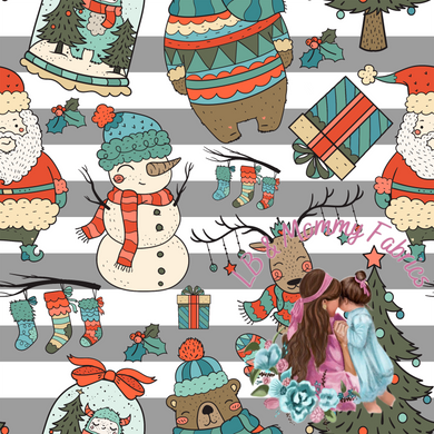 Christmas on sage coord stripes (U)